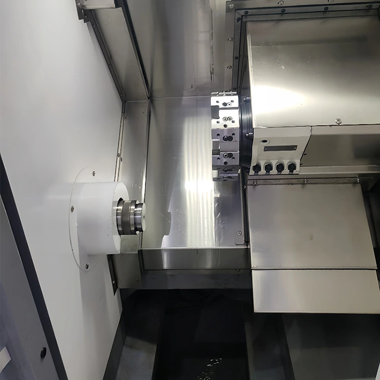 ● Makabagong Disenyo ng Kama: Ang nakahilig na 60° central saddle ay naglalapit sa workpiece sa operator. Tinitiyak ng resin-cast bed ang mataas na tigas, vibration resistance, at makinis na pag-alis ng chip.