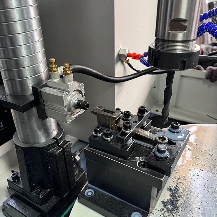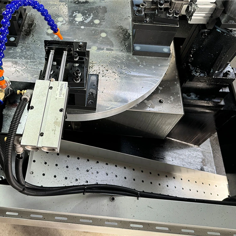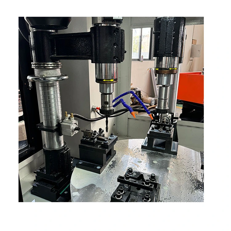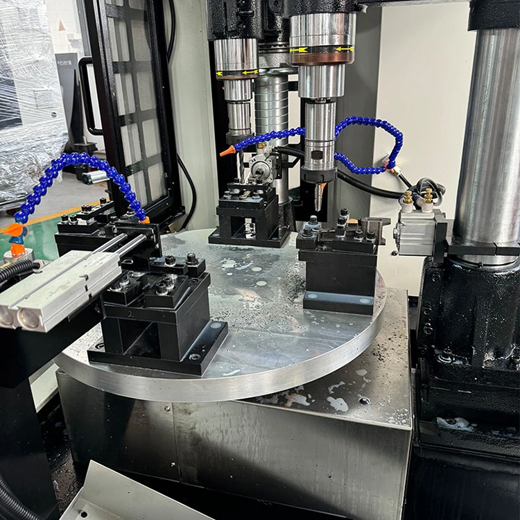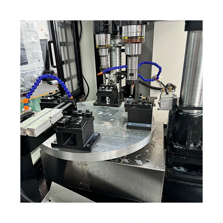 Ang Four-axis CNC Turntable Compound ay isang matalinong workstation na nagsasama ng paggiling, pagbabarena, pag-tap at iba pang mga proseso. Ang core ay isang rotary table na nilagyan ng four-axis CNC system at apat na machining spindles. Nangangahulugan ito na ang apat na magkakaibang workpiece ay maaaring iproseso nang sabay-sabay o sunud-sunod, at maraming mga proseso o bahagi ang maaaring kumpletuhin sa isang cycle, na lubos na binabawasan ang bilang ng mga oras ng pag-clamping at oras ng paghihintay.