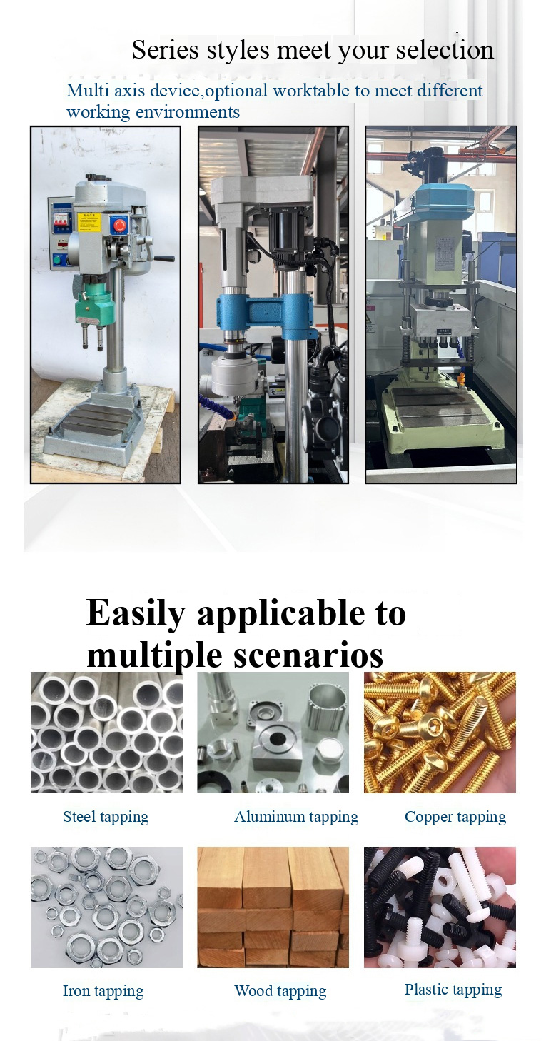 A common multi-axis drilling machine and a common drilling machine (including bench drills, vertical drills, radial drills, drilling and milling machines, direct motor connections, power heads, etc. can all be installed) can process several or even ten to twenty holes or threads at one time as long as the power is sufficient, which can greatly improve the production and processing efficiency of tapping or drilling